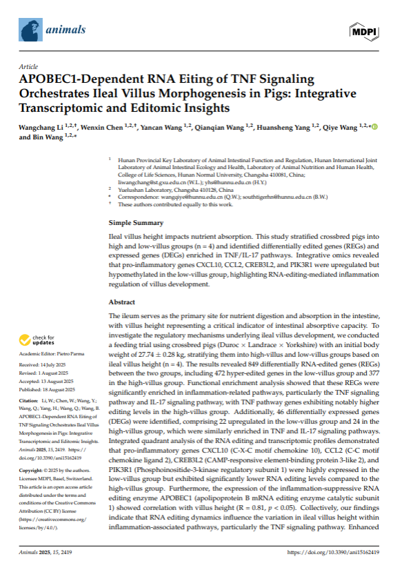 上一条:杨焕胜王启业老师课题组2025 Effects of Dietary Crude Protein Level on Growth Performance, Carcass Traits, Meat Quality, and Fatty Acid Composition of Ningxiang Finishing Pigs 下一条:杨焕胜王启业课题组2025 Comparative Analysis of Gut Microbiota Diversity Across Different Digestive Tract Sites in Ningxiang Pigs
