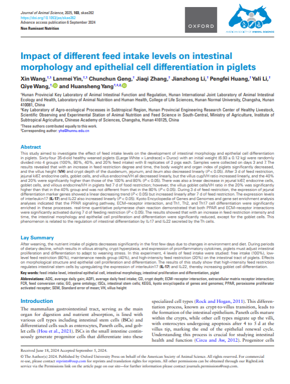 上一条:杨焕胜王启业老师课题组2025 The relationship of N-glycosylation and porcine duodenal morphology and function 下一条:杨焕胜王启业老师课题组2025 Dietary Iron Alleviates Dextran Sodium Sulfate‑Induced Intestinal Injury by Regulating Regeneration of Intestinal Stem Cells in Weaned Mice