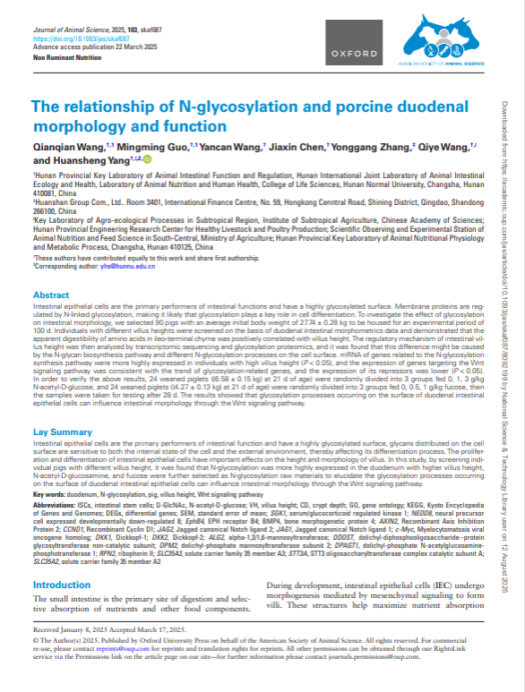 上一条:尹佳老师课题组2025 Phosphate-solubilizing function of Pediococcus pentosaceus PSM16 and its underlying mechanism 下一条:杨焕胜王启业老师课题组2025 Impact of different feed intake levels on intestinal morphology and epithelial cell differentiation in piglets